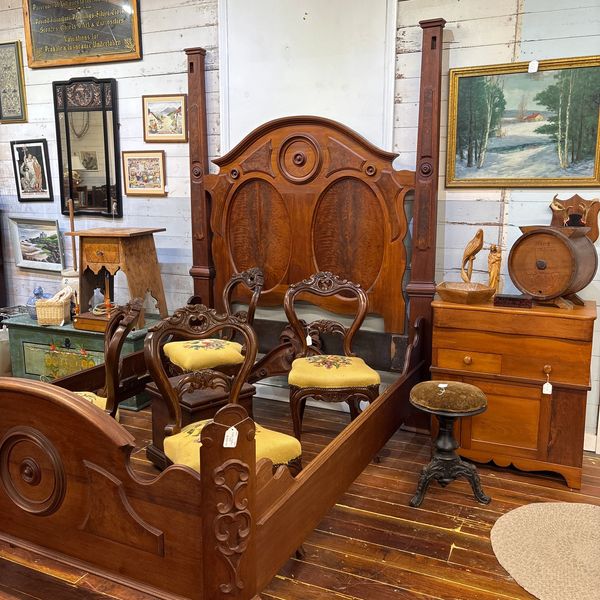 You never know what might appear in our booth. We have had harpoons, coffin lids, period Queen Anne tables, hooked and braided rugs of every description and age, and monkey teeth necklaces... And that is just to name a few of the items.